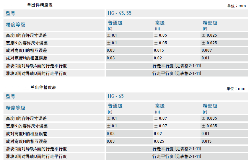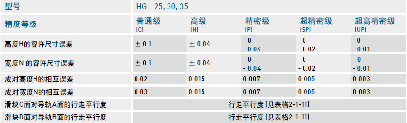 HG系列直線導(dǎo)軌的精度,分為普通、高、精密、超精密、超高精密級共五級,客戶可依設(shè)備精度需求選用精度。