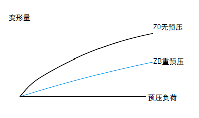預壓力是預先給與鋼珠負荷力,亦即加大鋼珠直徑,利用鋼珠與珠道之間負向間隙給與預壓,此舉能提高直線導軌的剛性及消除間隙;以右圖來解釋,提高預壓力可增加直線導軌剛性。但小規(guī)格建議選用輕預壓以下預壓,以避免因預壓選用過重降低其使用壽命。
