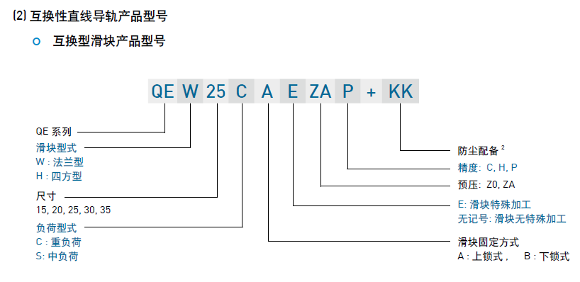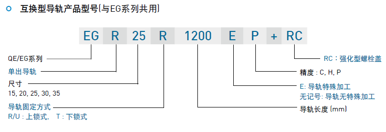 (1) 非互換性直線導軌產(chǎn)品型號