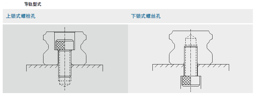 除了一般上鎖式螺栓孔導(dǎo)軌外,HIWIN亦提供下鎖式螺絲孔導(dǎo)軌,方便客戶安裝使用。
