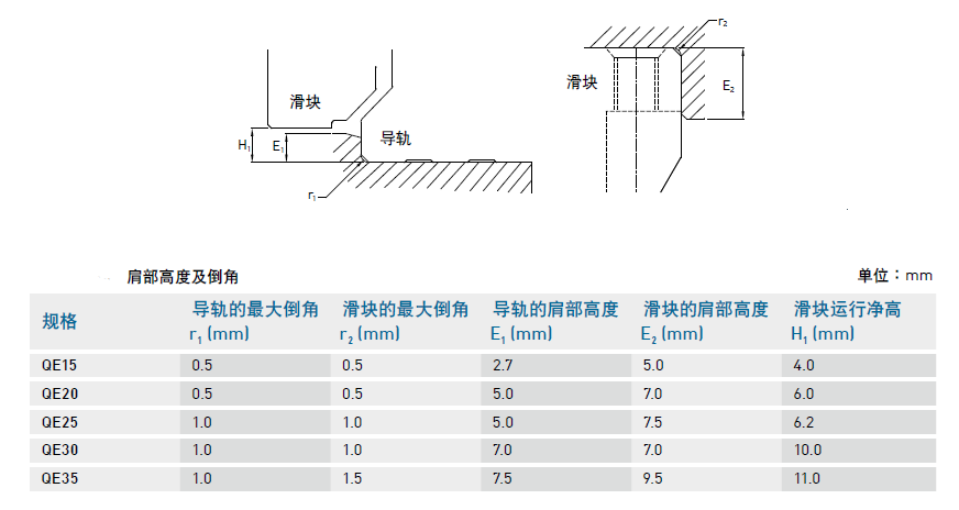 安裝直線導軌時必須注意安裝面肩部的狀況是否適當,如倒角過大,凸出的地方易造成直線導軌精度不良,而高