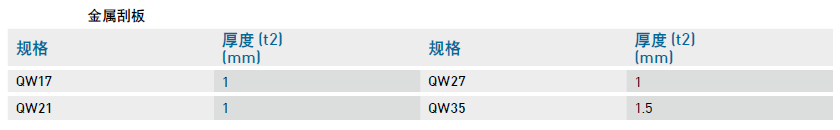 1、滑塊上面的金屬刮板,它不但可以隔離高溫鐵屑或加工火花,且還可以排除大體積雜質。對應的規格如下: